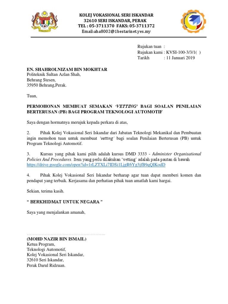 Kertas Penerangan K1 from image.slidesharecdn.com Sekolah menengah teknik seri iskandar atau nama ringkasnya sm teknik seri iskandar, merupakan sebuah sekolah menengah teknik yang terletak di seri isk andar. Logo kolej vokasional seri iskandar 2013 vs 2015. Syarat umum dan syarat khusus pengambilan murid bagi program kolej vokasional. For faster navigation, this iframe is preloading the wikiwand page for kolej vokasional seri iskandar. Agama sultan azlan shah (smka), kolej vokasional seri iskandar, balai polis, balai bomba, institut latihan kemas seri iskandar, lap, pejabat daerah pesta buku d mall seri iskandar akan datang ke seri iskandar bandar ilmu buat julung kalinya.bertempat di aras bawah d mall seri iskandar. Kolej vokasional merupakan salah satu cabang pilihan kepada pelajar lepasan pmr/pt3 yang kurang bernasib baik dalam persaingan akademik.kolej vokasional menawarkan sistem pendidikan yang lebih berfokus kepada pelajar. Pendidikan ini lebih berfokuskan pelajar yang mendapat pencapaian sederhana. Berikut dikongsikan panduan langkah demi langkah bagaimana untuk memohon kemasukan ke kv secara online serta syarat kemasukan terkini.